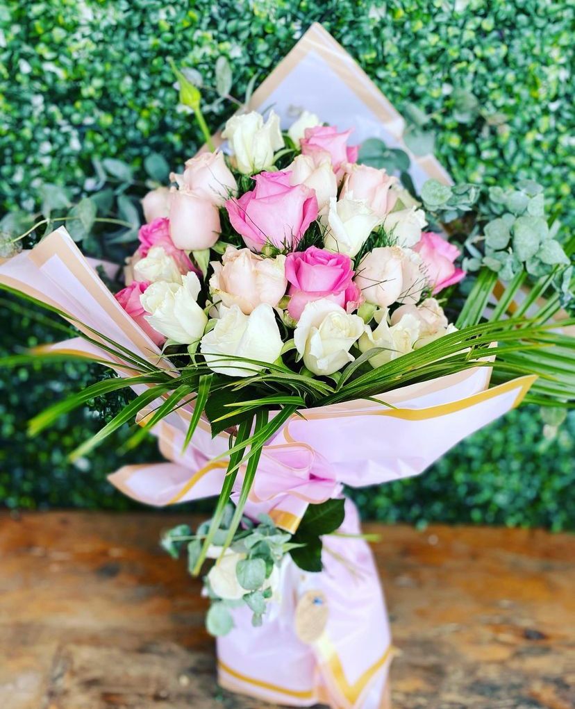 15 ADET PEMBE VE BEYAZ GÜL BUKETİ